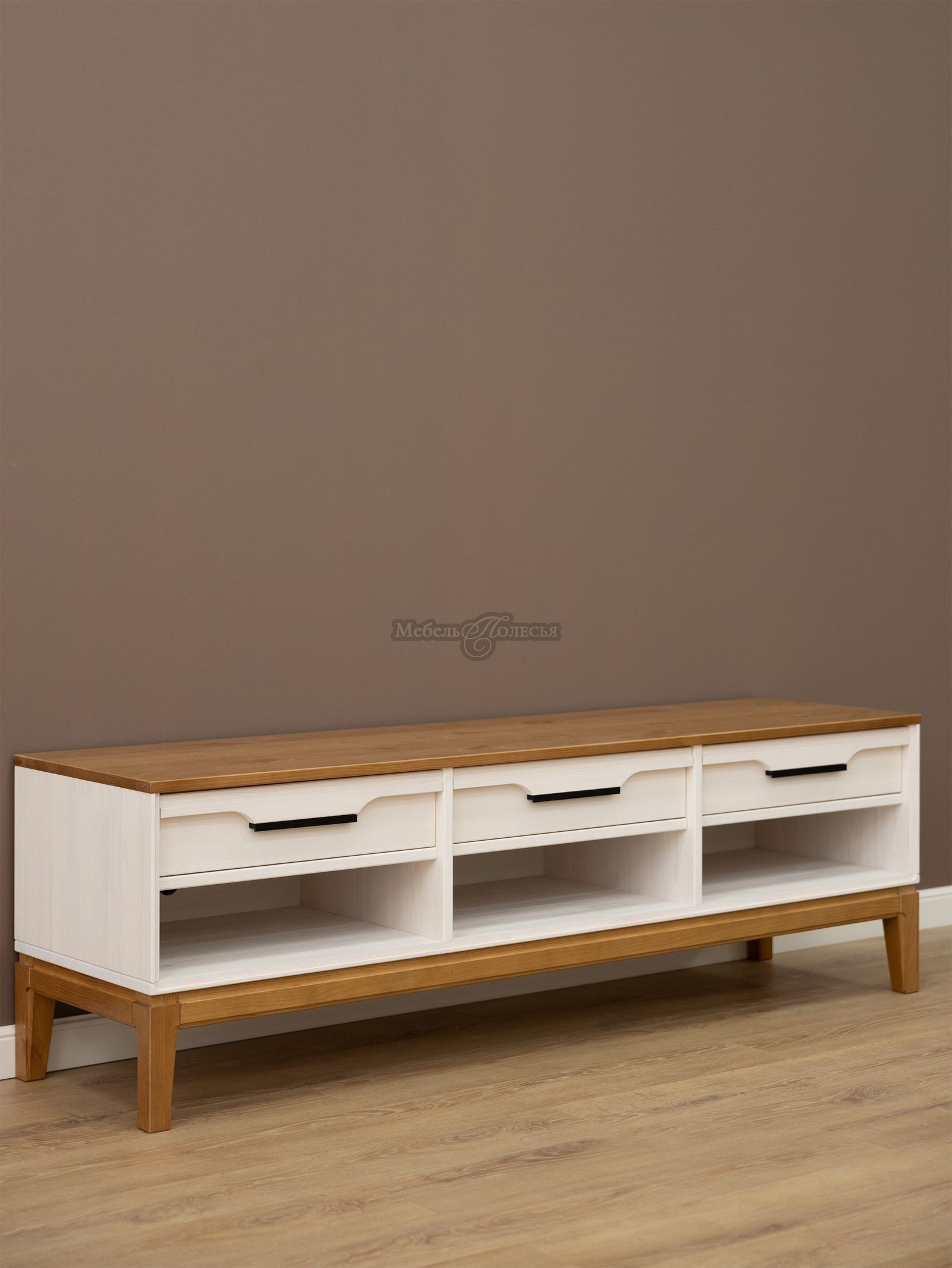 «Гранада» с 3 ящиками и 3 нишами – стильная и удобная тумба ТВ из натурального дерева для гостиной и спальни. Корпус, фасады и стенки ящиков изготовлены из массива сосны – прочного и долговечного натурального материала. Задняя стенка и донья ящиков сделаны из ДВП.