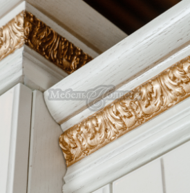 Cогласно классической стилистической направленности «Милана» украшена изящными декоративными элементами ручной работы: пилястры, балюстрады. А также карниз и витражные фасады, как детали, завершающие дворцовый образ мебели. Все это элегантно подсвечено светодиодной планкой.