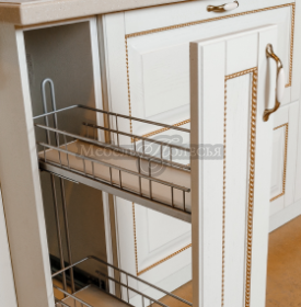 «Милана» оснащена надежной немецкой крепежной и дополнительной фурнитурой, что позволяет рационально использовать все пространство мебели, и обеспечивает легкий доступ ко всем необходимым на кухне предметам.