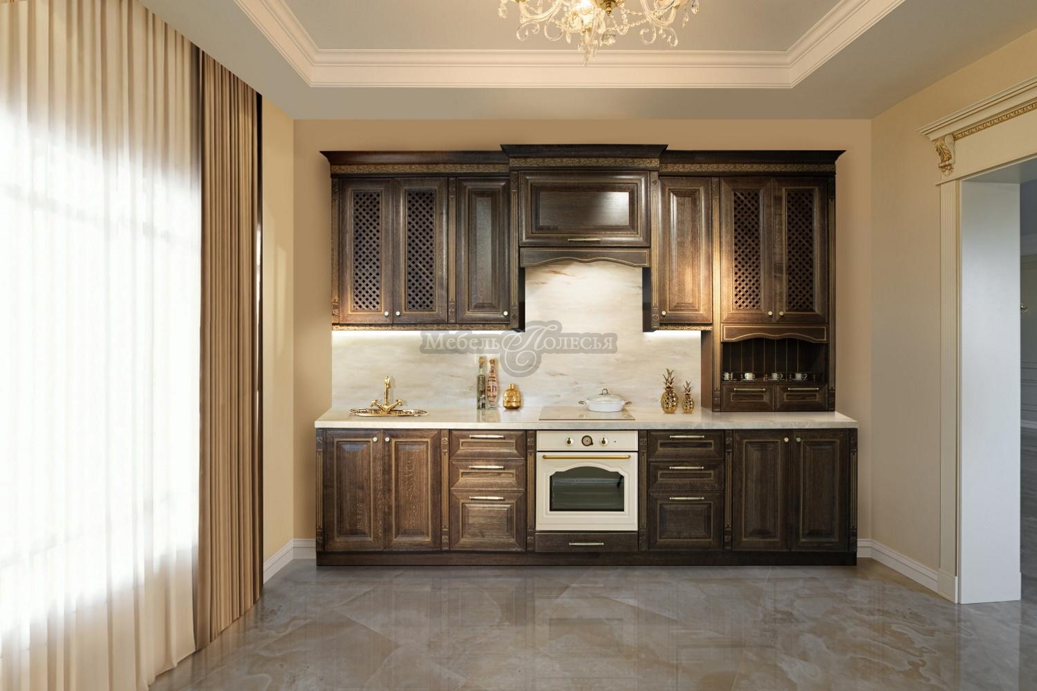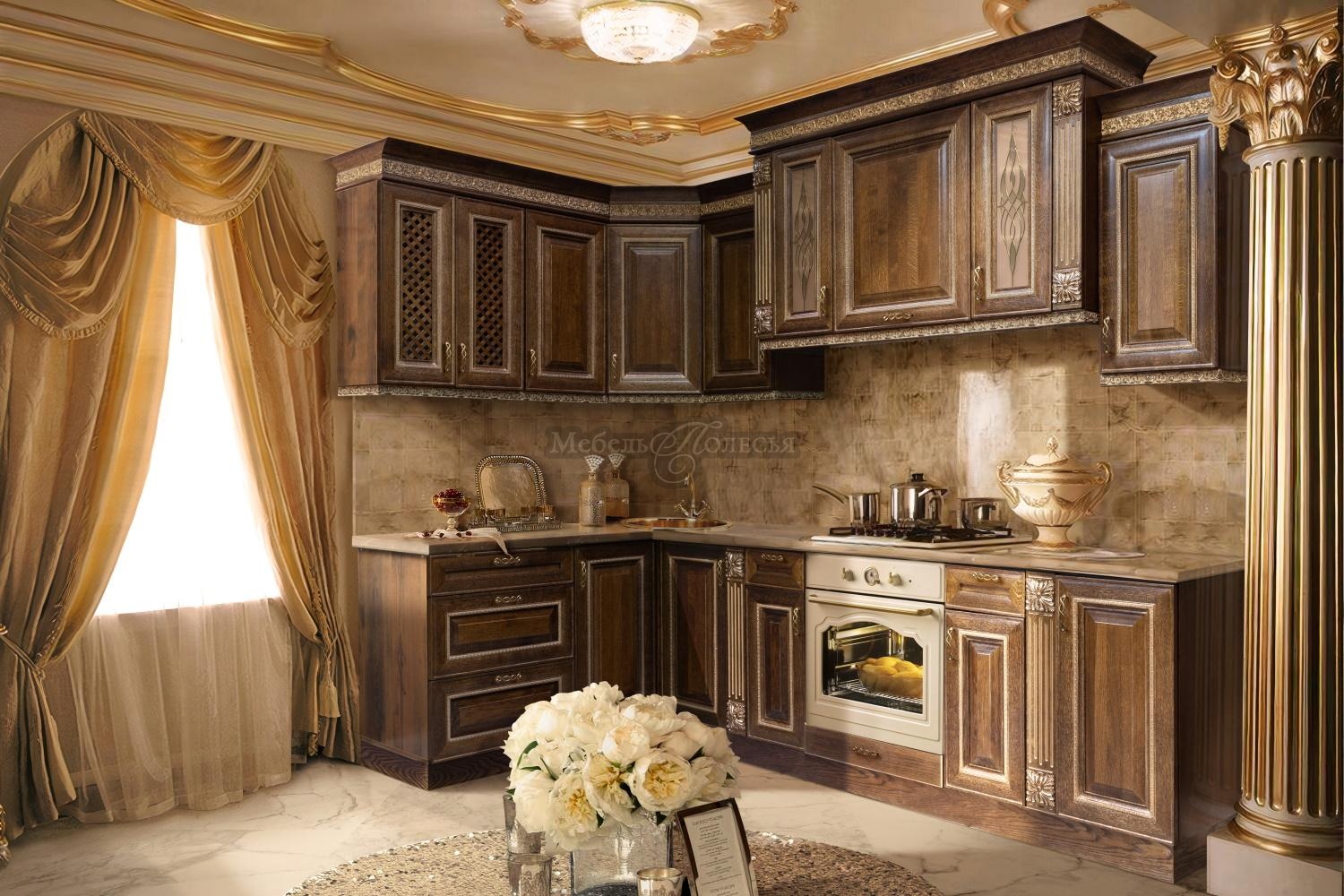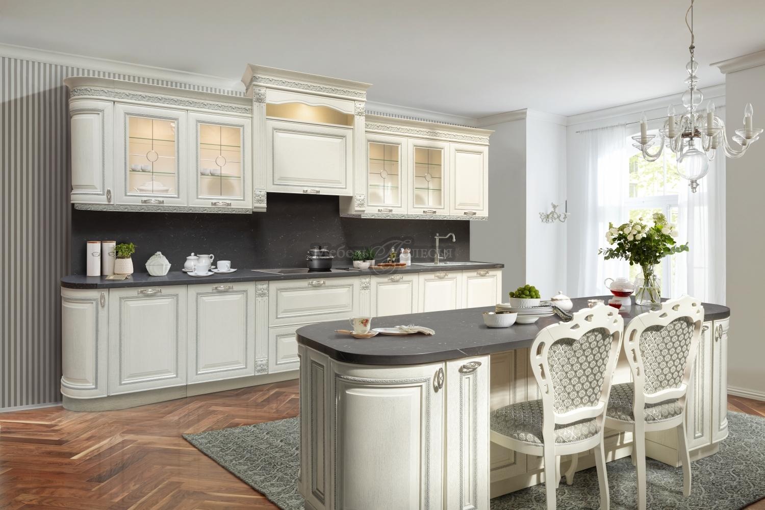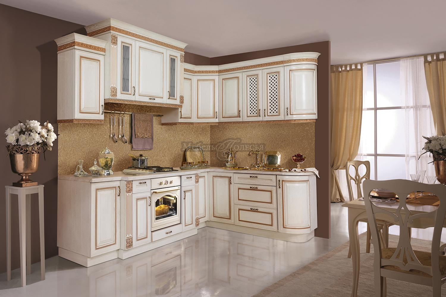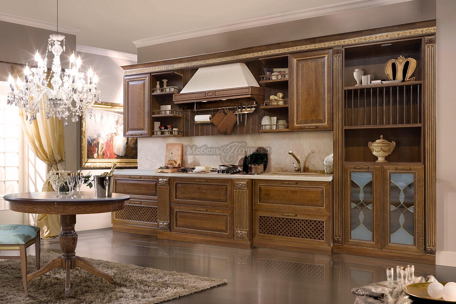 Кухня из массива и шпона дуба «Мирелла» - одна из самых востребованных классических моделей в нашем ассортименте. Крашения выгодно подчеркивают текстуру натурального дерева. Это всегда исключительно экологические лакокрасочные материалы. Благодаря им мебель на кухне будет безупречно выглядеть долгие годы.