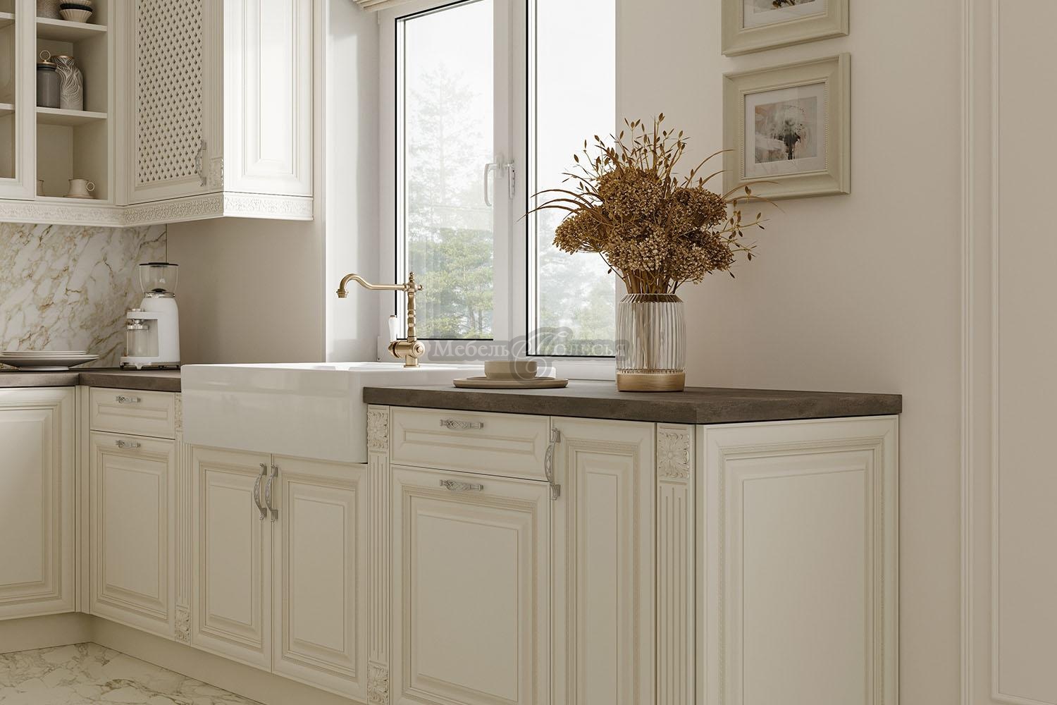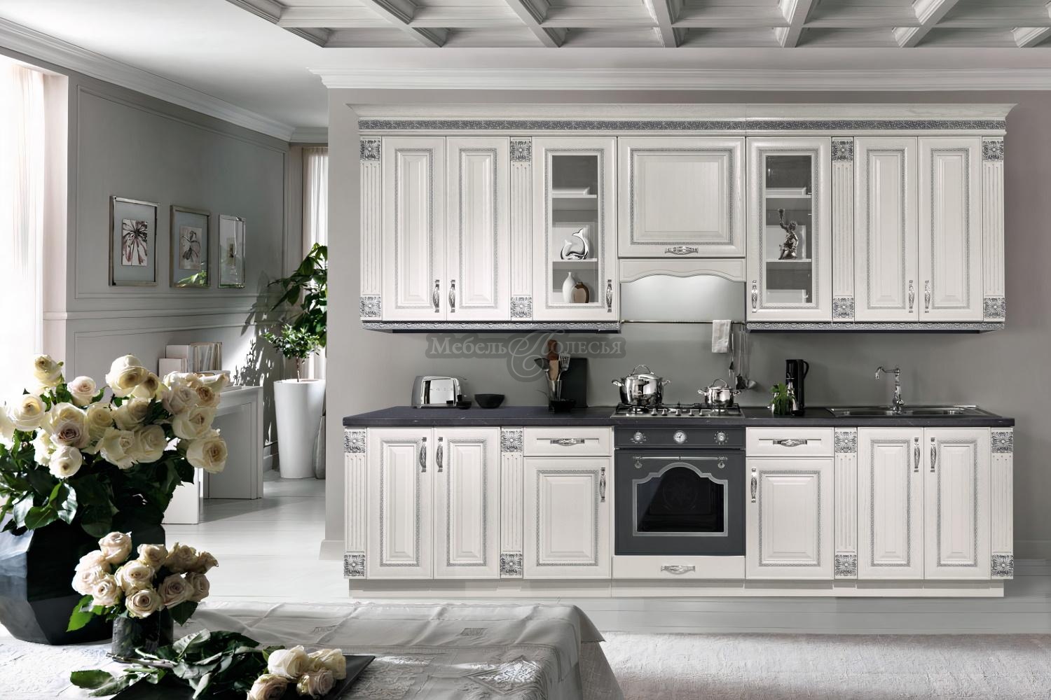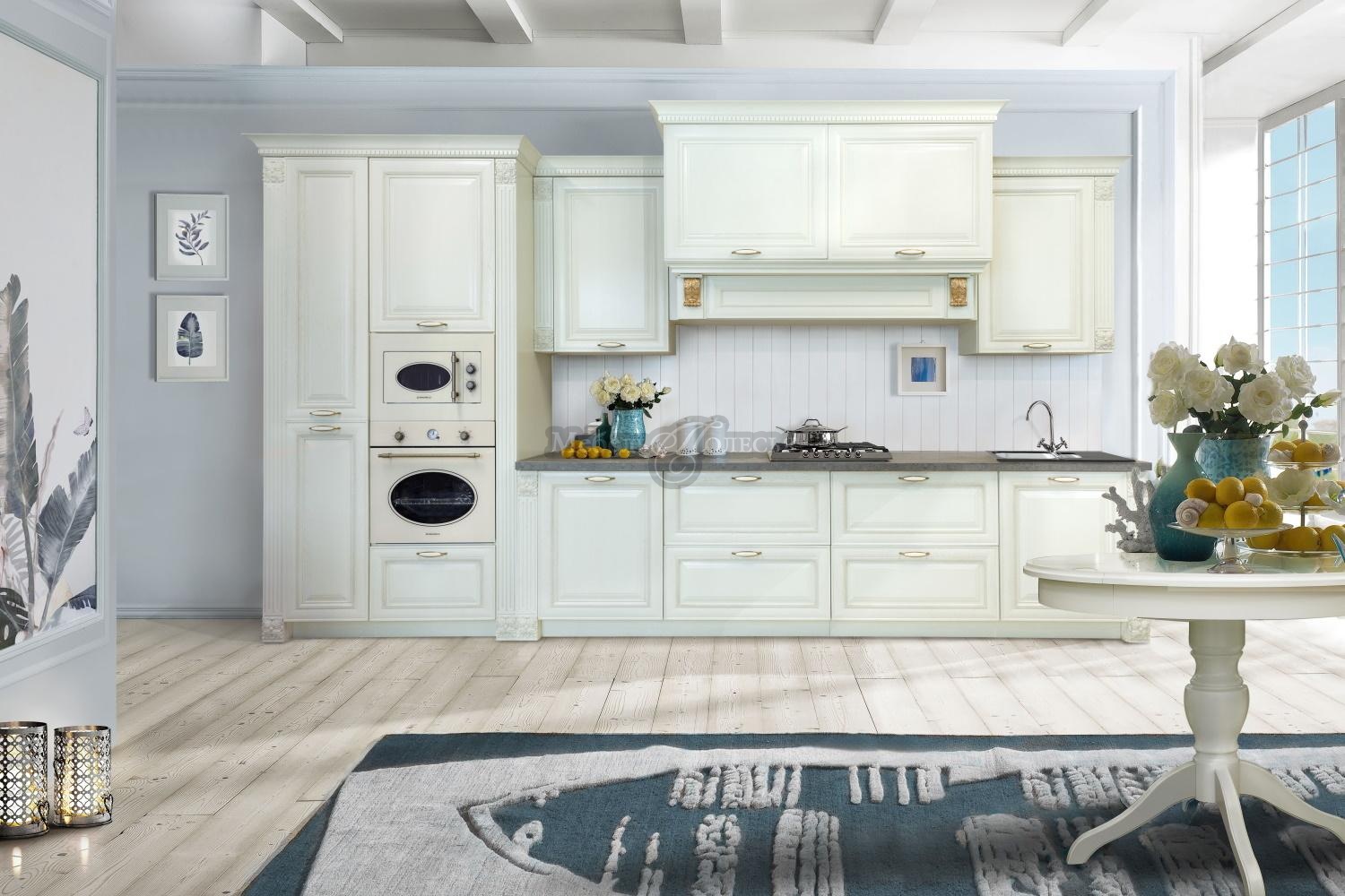 Классический стиль не терпит небрежности, и каждая его деталь должна быть тщательно продумана. Большое внимание уделено декору, поэтому вся мебель коллекции «Мирелла» украшена изысканными элементами ручной работы - балюстрады, пилястры, карнизы. Возможна установка витражных вставок на фасады.