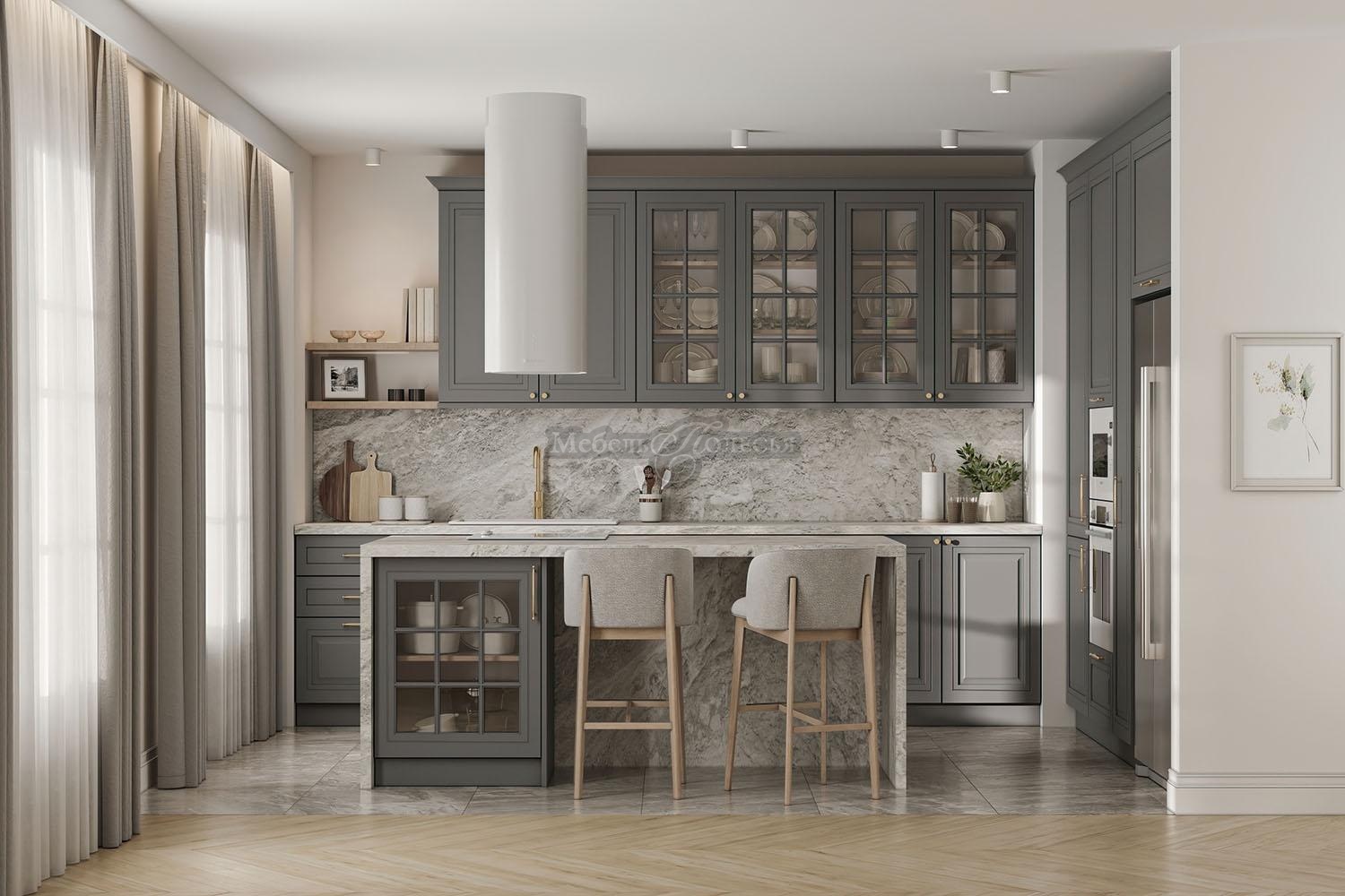 Кухня «Толедо» с ярко выраженным неоклассическим характером, который подчеркнут неординарной фрезеровкой на фасадах. Утонченная фурнитура, карниз над верхними шкафами и витражные вставки от выразительной классик сочетаются со строгими линиями и четкими переходами из современного минимализма. Симбиоз традиций и инноваций, которому не страшна смена модных тенденций, он будет очарователен и актуален во все времена.