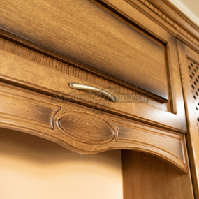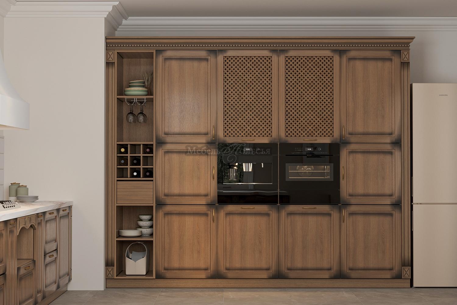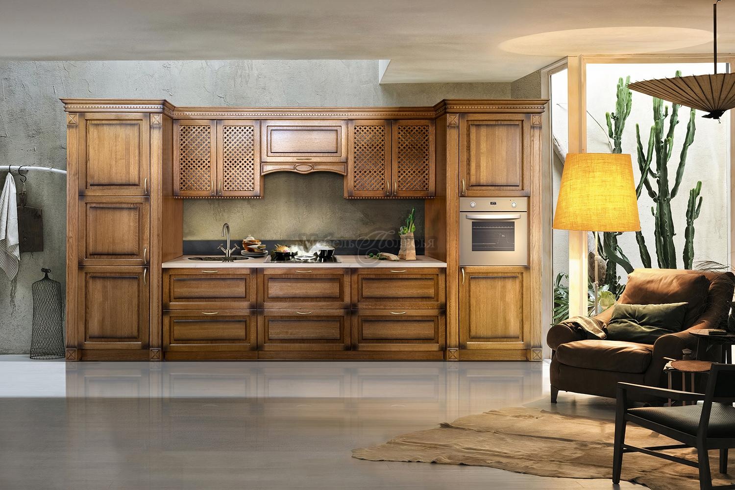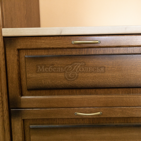 Кухня «Верди» - классическая мебель из массива и шпона натурального дерева. Природная фактура и рисунок среза дуба подчеркнуты качественными экологичными лакокрасочными материалами. «Верди» - коллекция для тех, кто консервативен, ценит качество и долговечность, любит гармонию и порядок. А так же ценит проверенные временем интерьерные решения. Дизайн в классическом стиле требовательный, важно все, вплоть до мельчайших деталей, поэтому декоративные элементы изготавливаются вручную: балюстрады, пилястры. Дополнительно есть карнизы и витражные вставки, как важная часть, завершающая образ классической кухни. А световая планка и роскошная добротная фурнитура придадут мебели еще более приятный и эстетичный вид. Внутреннее наполнение вы можете спроектировать так, чтобы было легко и просто поддерживать порядок, и при этом все необходимое было всегда под рукой. Крепежная и дополнительная фурнитура от немецкого производителя настолько же надежна и долговечна, как и сама мебель. Поэтому кухня будет вас радовать своим внешним видом и функционалом максимально долго.
