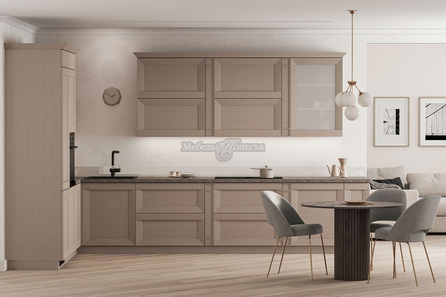 Стеклянные фасады и интегрированные ручки разнообразят образ кухни, добавят акцентов и современности.Эта коллекция предназначена не только для любителей традиционных неоклассических интерьеров, но и для всех, кто предпочитает дизайн в стиле лофт. Количество доступных дизайнов шкафов позволяет создать неповторимый интерьер.