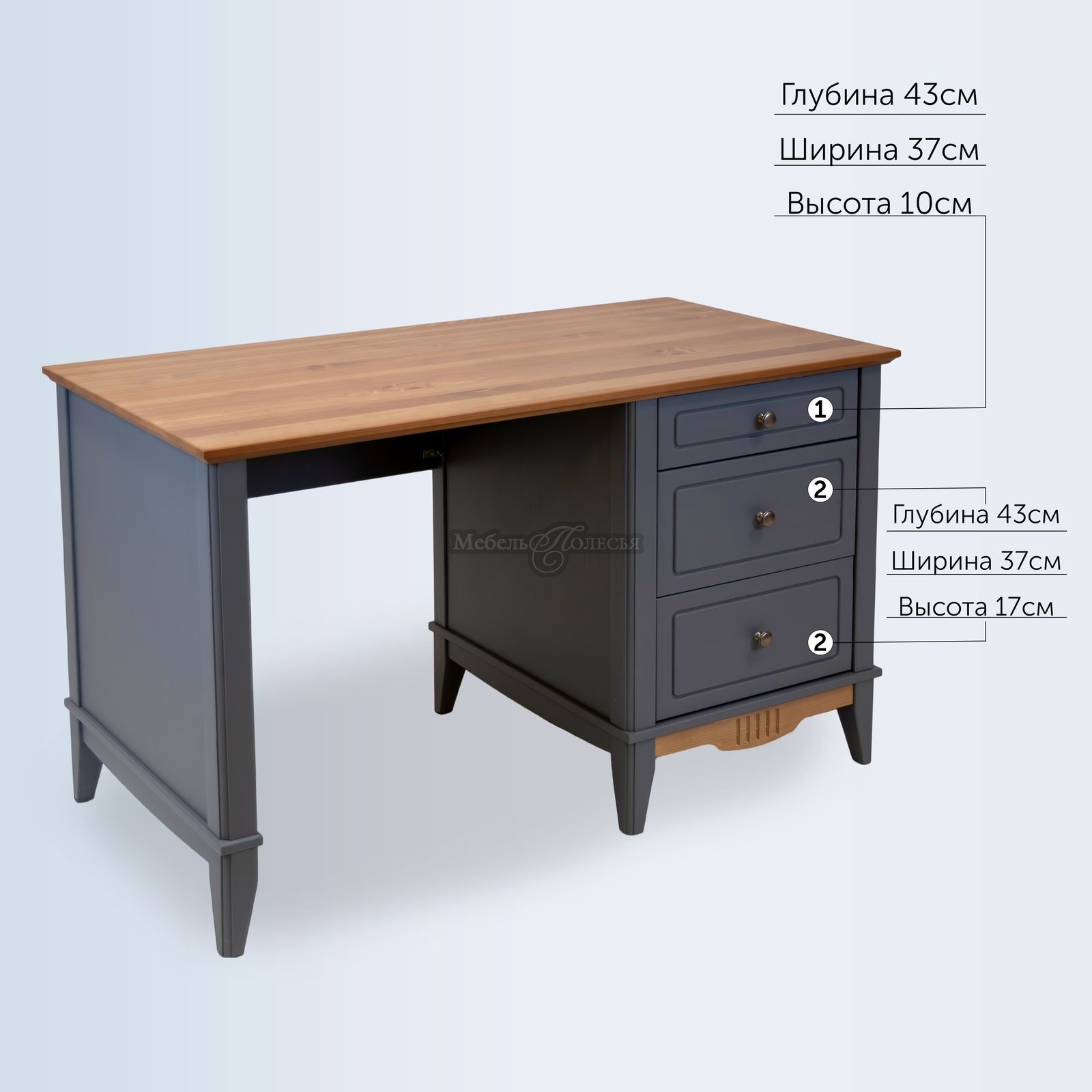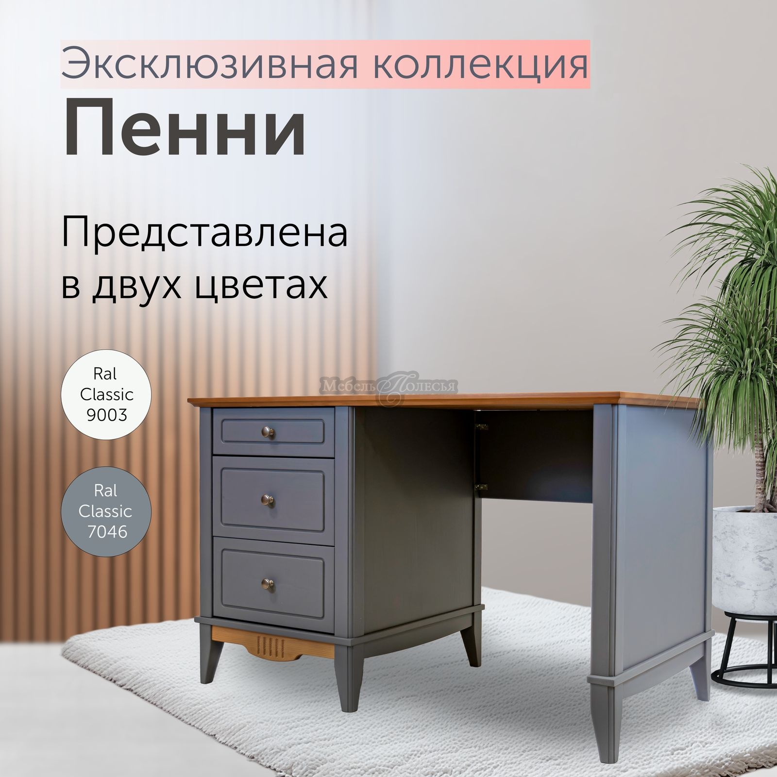 Простой и удобный письменный стол «Пенни» из натурального дерева имеет три вместительных ящика. Стол можно использовать и как учебный для школьника, и как рабочий в офисе или в комнате-кабинете. Тумбу можно сделать справа или слева, по вашему желанию.