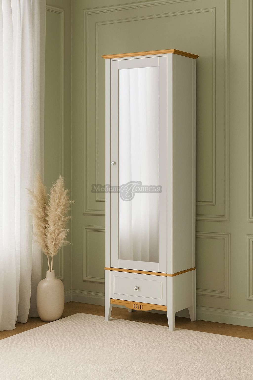 Одностворчатый шкаф для прихожей «Пенни» с зеркалом и ящиком выполнен в популярном скандинавском стиле, с минимумом декора. Узкий шкаф будет хорошо смотреться в прихожей вместе с обувницей, вешалкой и комодом «Пенни».