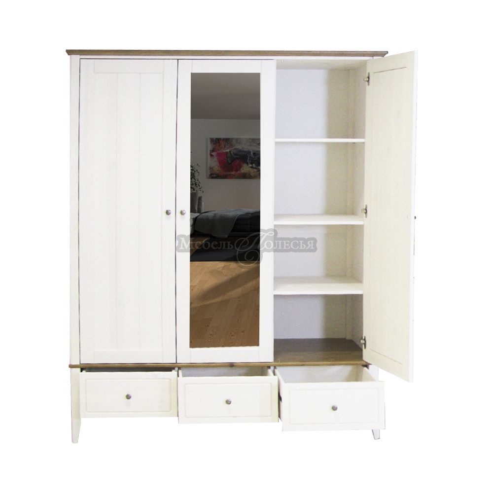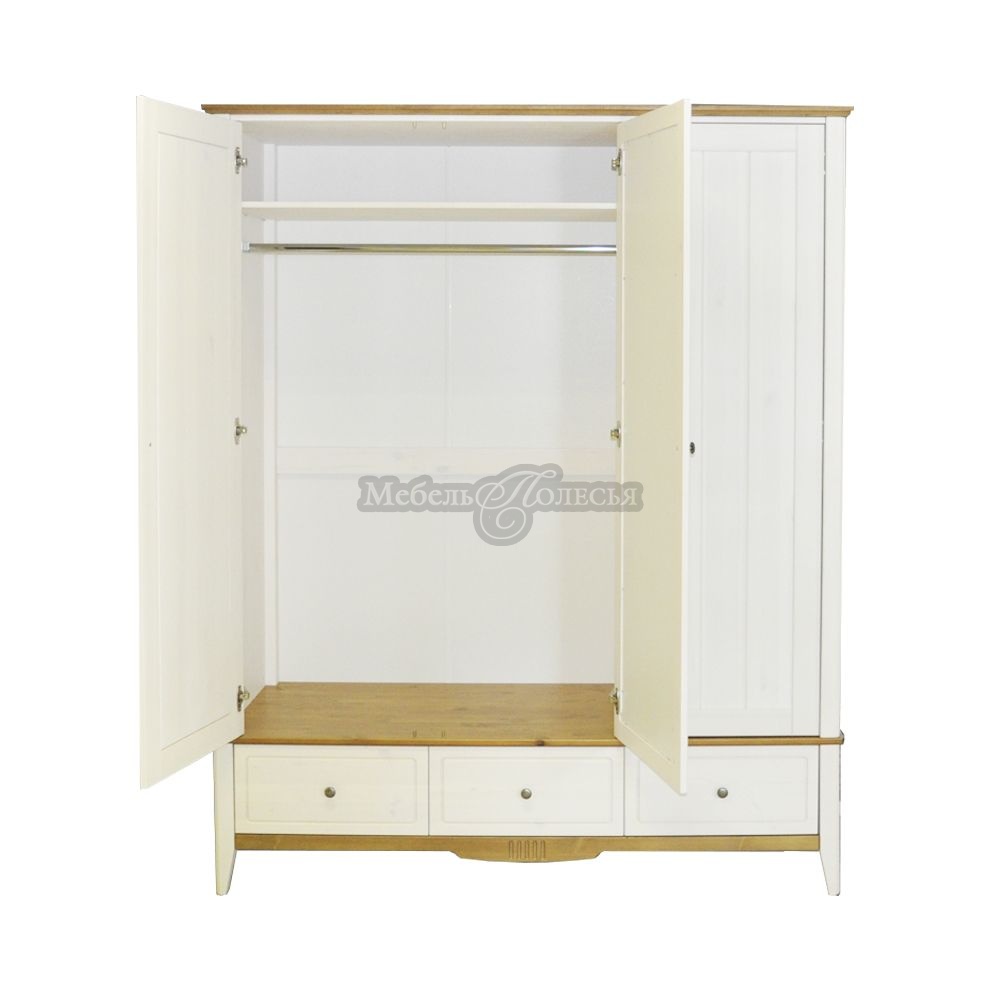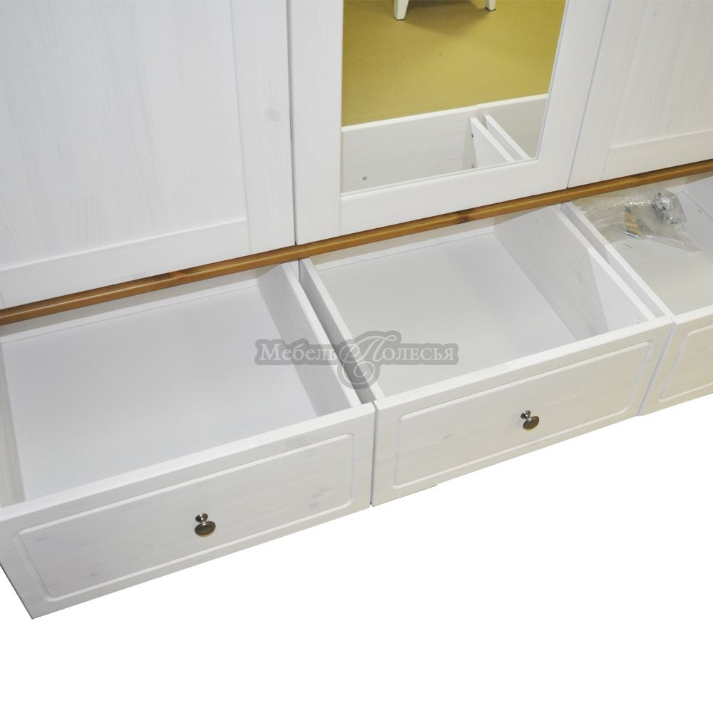 Натуральный материал. Корпус шкафа и полки изготовлены из массива сосны, чистого и долговечного природного материала с красивой текстурой.