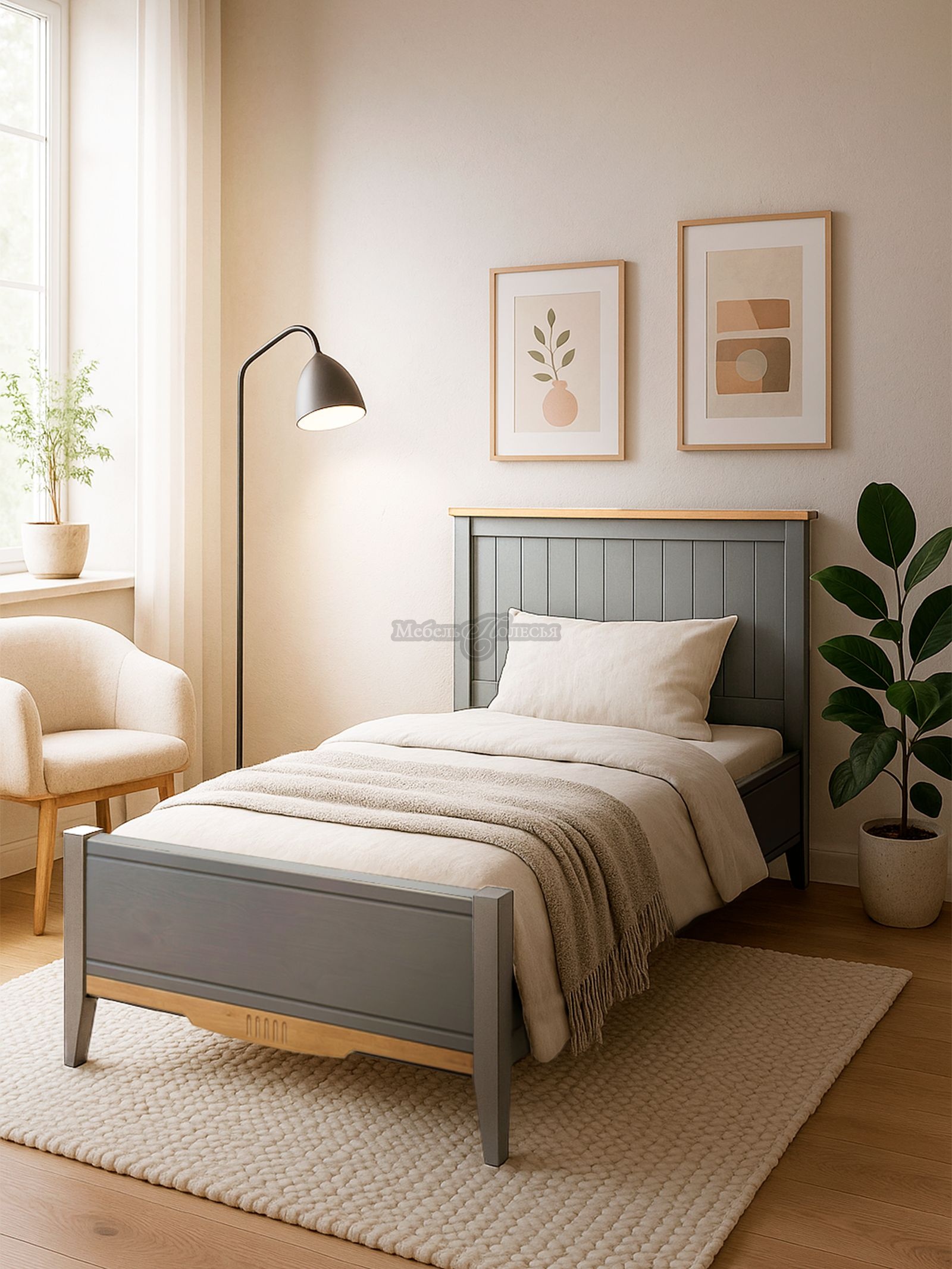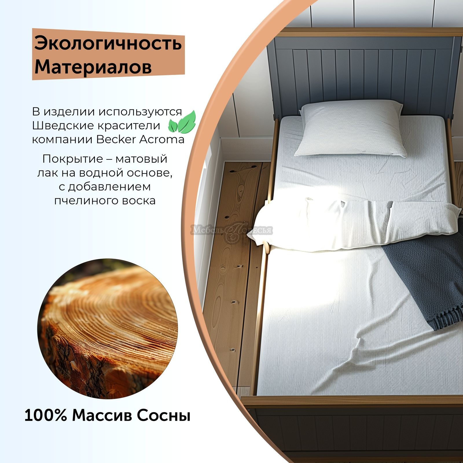 Кровать «Пенни», 90х200, серый/антик изготовлена полностью из массива сосны и покрыта высококачественными матовыми лаками на водной основе от шведского бренда Becker Acroma.