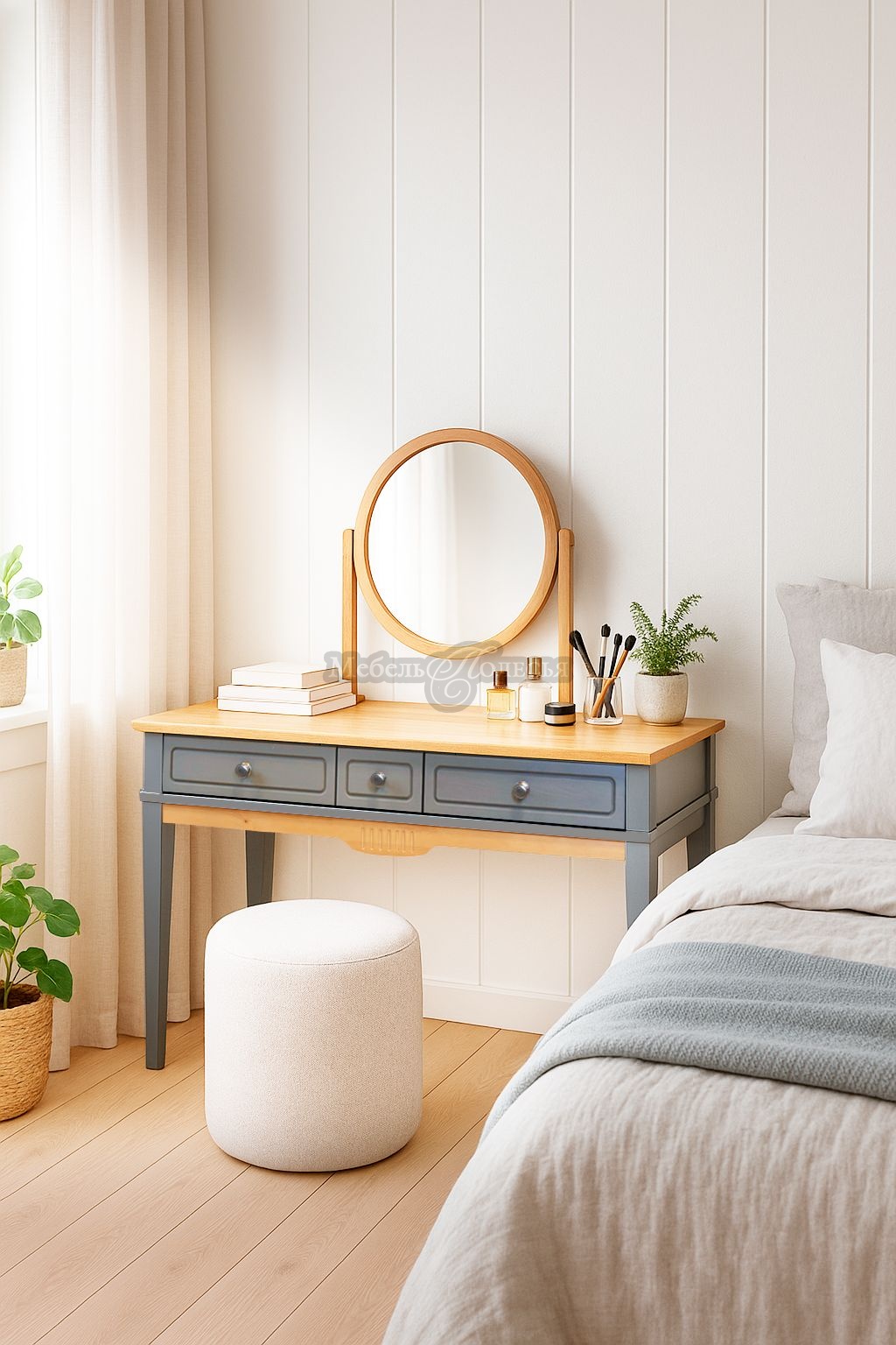 Туалетный столик «Пенни» с 3 ящиками изготовлен из натурального дерева. Столик в скандинавском стиле не занимает много места, будет уместен не только в спальне, но и в гостиной или в рабочем кабинете.