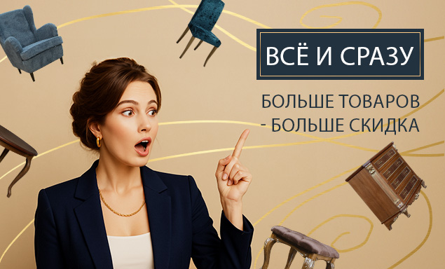 Представляем вам уникальную возможность экономить с акцией «Все и сразу». Вот как это работает: чем выше ваш чек, тем более привлекательные скидки вас ждут. В интернет-магазине Мебель Полесья вы сможете наслаждаться следующими уровнями выгоды: